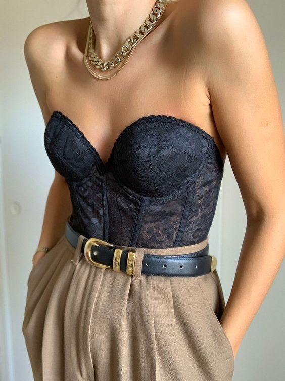 The evolution of Corsets has changed over time from once being a strict undergarment to structure the human body for a greater shape of poise and better posture. To now a street style that is not to be worn as an undergarment but to be worn as the garment itself. As the form of a top constructed in a way not to deform the torso yet show off natural curves of the upper body, to highlight and accentuate the beauty of whom wears it. I love this trend and think anyone can feel beautiful in a corset-style top without feeling restrained. Now that corsets are existing to accentuate our figure naturally we can have fun and make a statement. So wear a corset top with your favourite pair of jeans or an eye-catching skirt, break boundaries wear what you feel confident in. This retired idea of female oppression has to go so why not be daring?